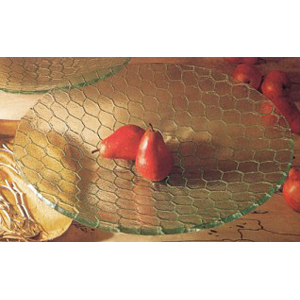Aus der Werkstatt des Designers Danny Kalderon. Tiefgründig schimmerndes Qualitätsglas, in das in formbaren Zustand mittels Metallgitter Strukturen eingeprägt wurden. Schale mit großem Gittermuster, besonderes als Dekorationsobjekt geeignet - mit nur ein paar Früchten, Blüten, Schwimmkerzen geschmückt. Durchmesser ca. 33 cm.